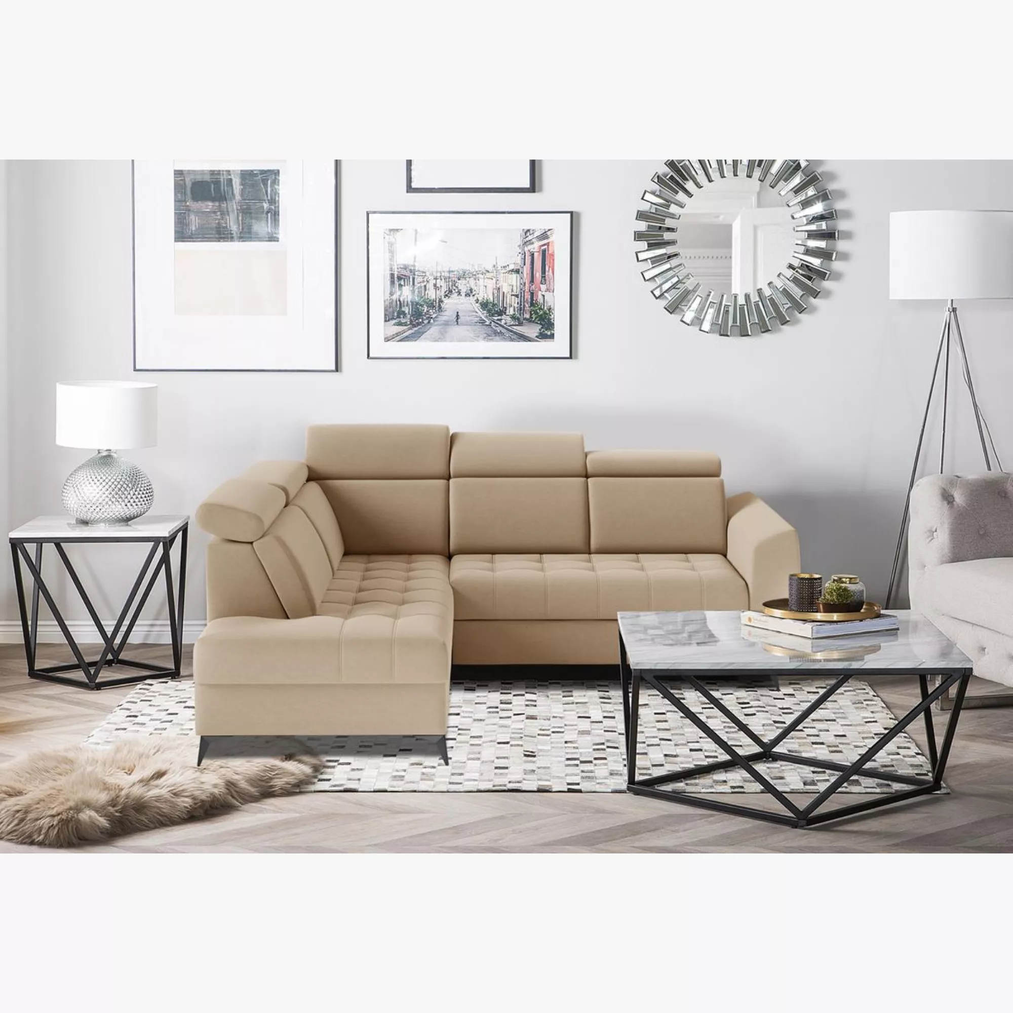Az Allegra II. szövet borítású sarokülő igazán stílusos és modern kiegészítője lehet az otthonodnak. Állítható fejtámlákkal és hullámrugós alátámasztással rendelkezik a maximális kényelemért, ezenkívül ágyneműtartós és néhány mozdulattal ággyá alakítható kiemelő mechanika segítségével. A termék magas fekhelyes és a hátulja is szövettel van bevonva. Jobbos, illetve balos állásban rendelhető.