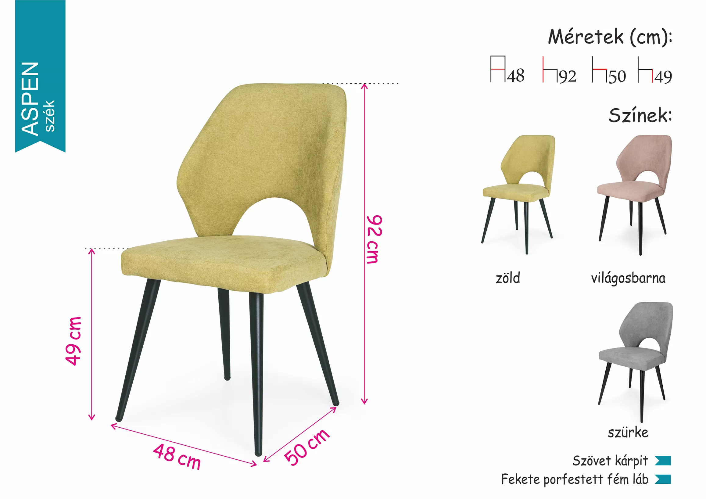 | Lábak | Porfestett fém lábak |