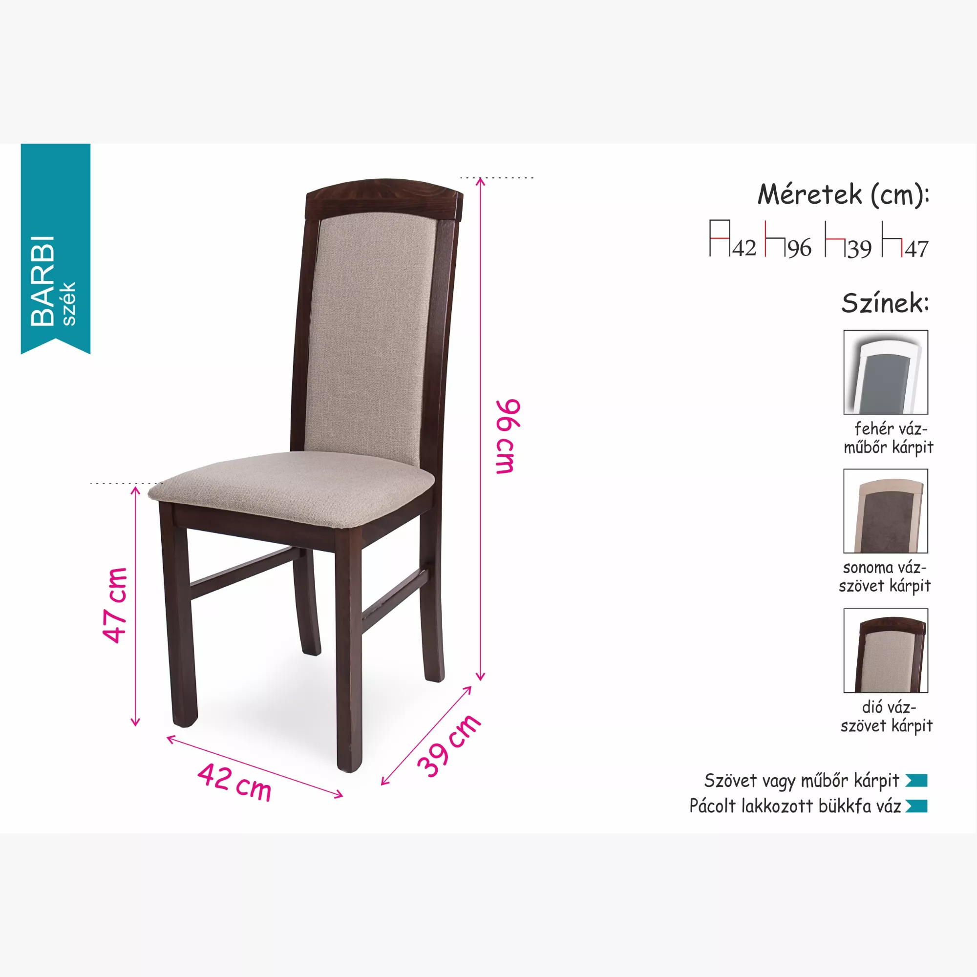 ülőlap magasság: 47 cm
