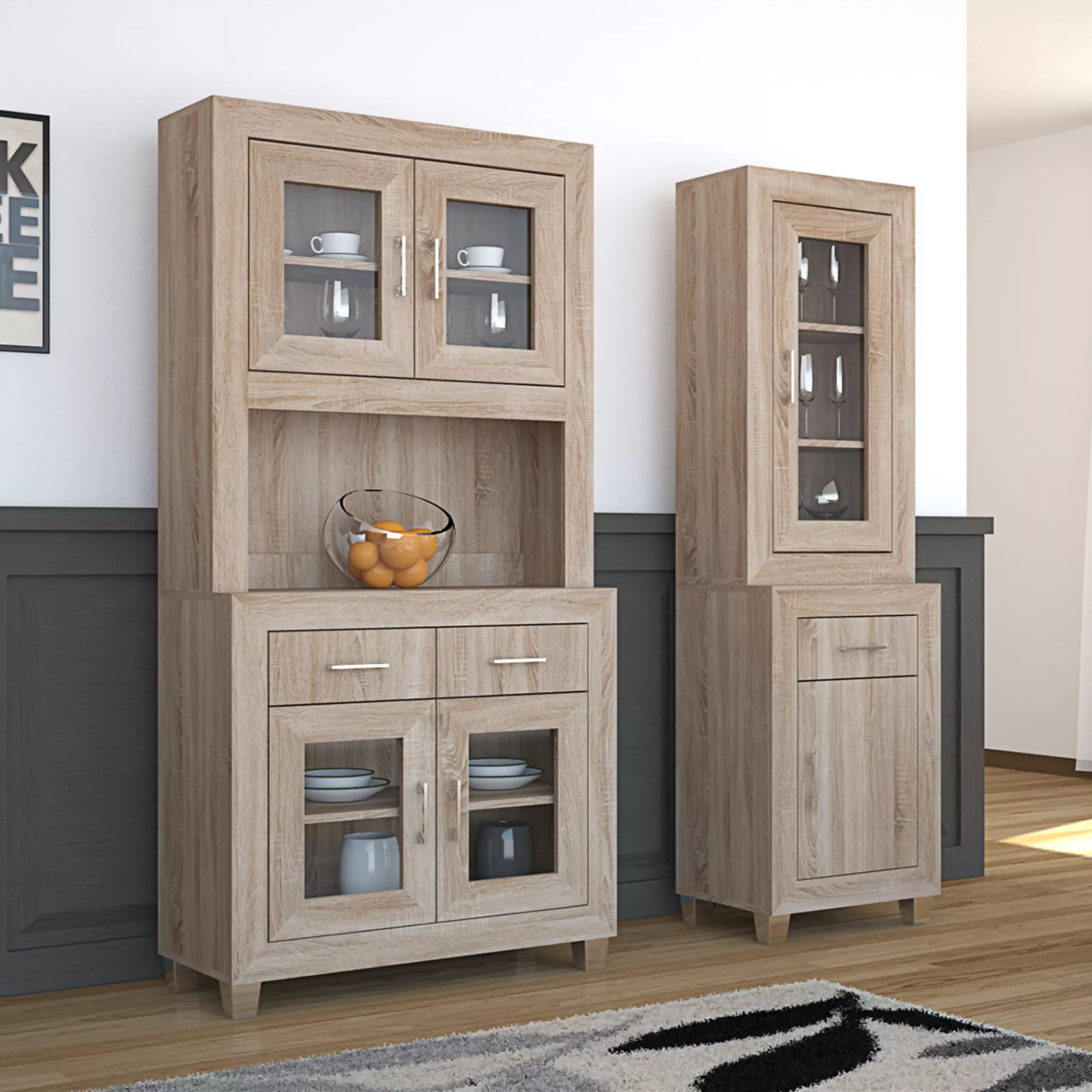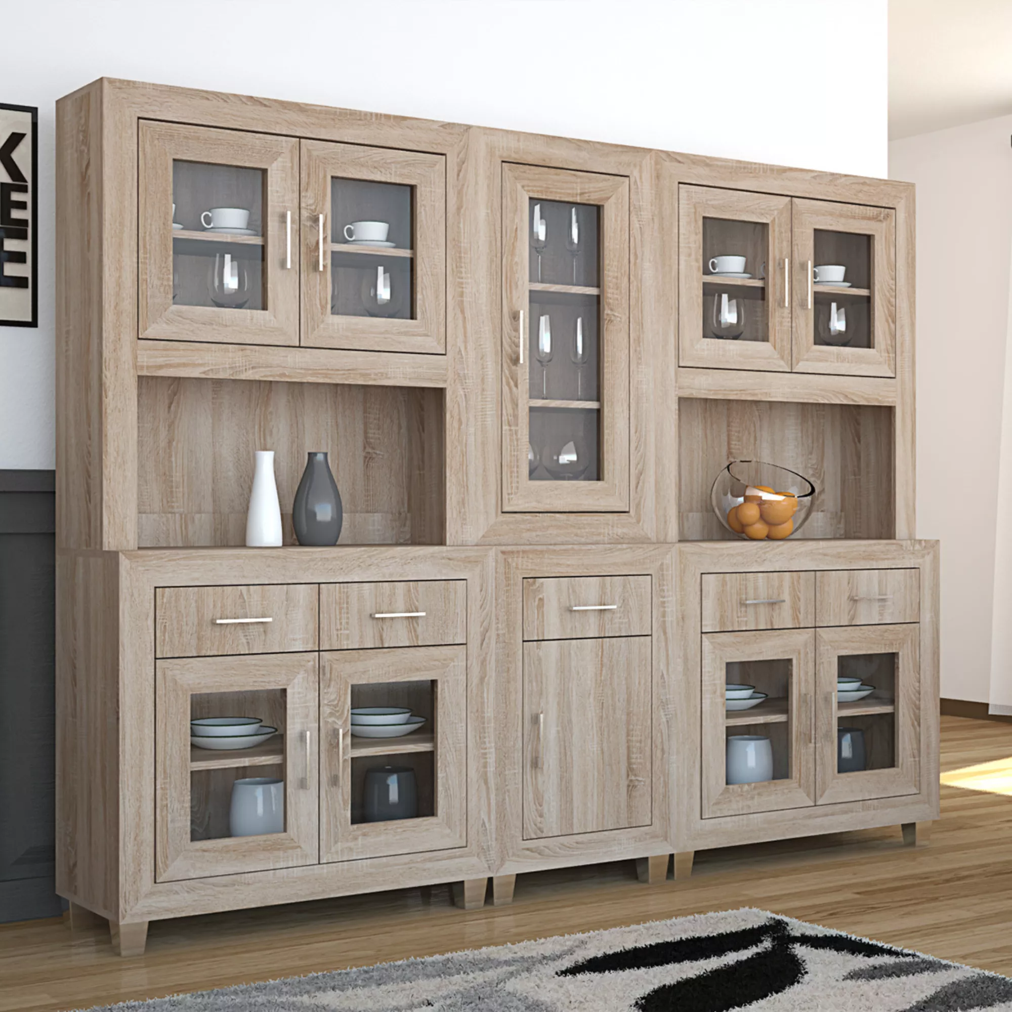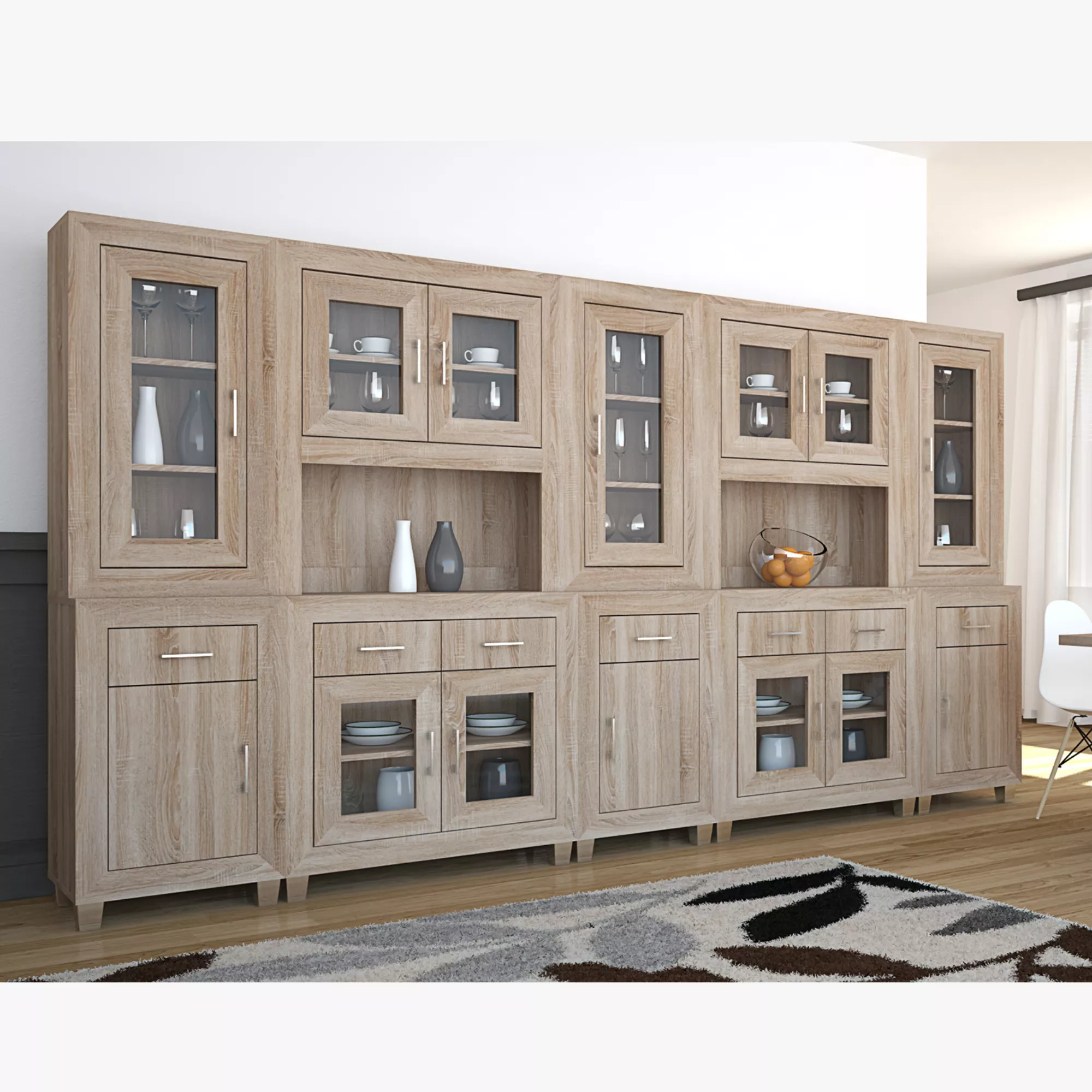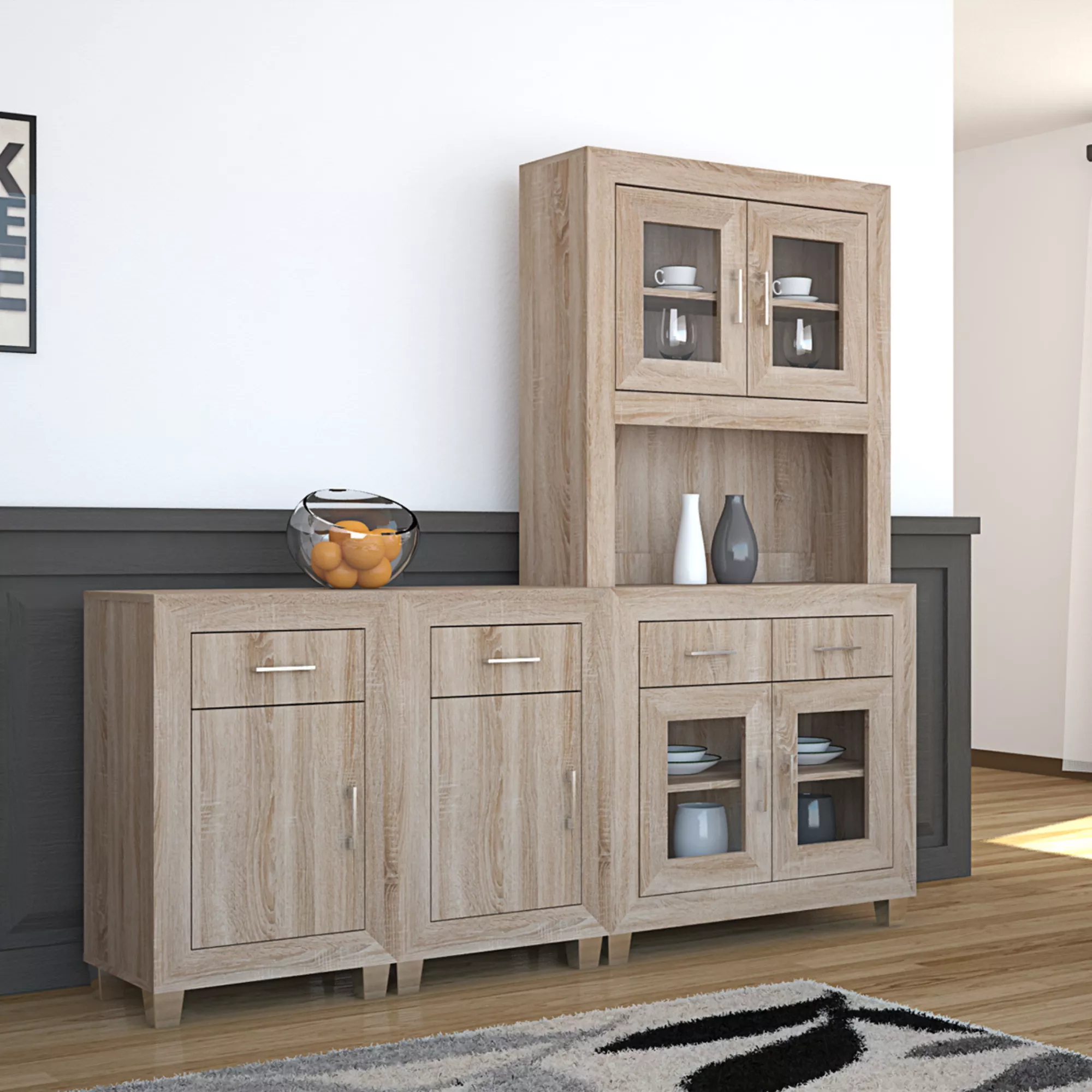 Gondold újra a tálalószekrényről alkotott eddigi elképzeléseidet. A legújabb irányzatokat követő, egyedi igények szerint variálható Dany tálalónk elemes kialakításának köszönhetően nagyon jól kombinálható bútordarab. Az 56 és 96 cm széles elemek variációja többféle megjelenést tesz lehetővé. Letisztult formavilágának köszönhetően remekül beilleszkedik egy klasszikus vagy éppen modern stílusban berendezett konyhába vagy étkezőbe. Sonoma tölgy és san remo színekben választható.