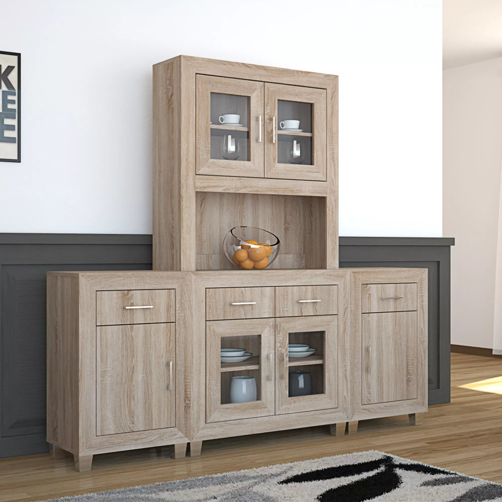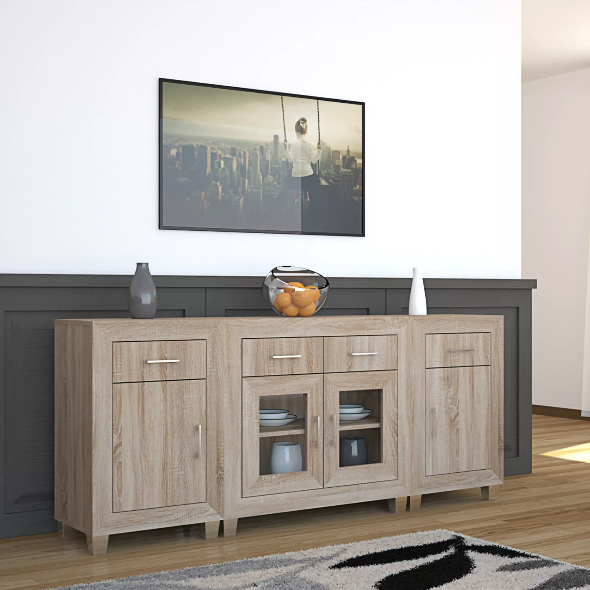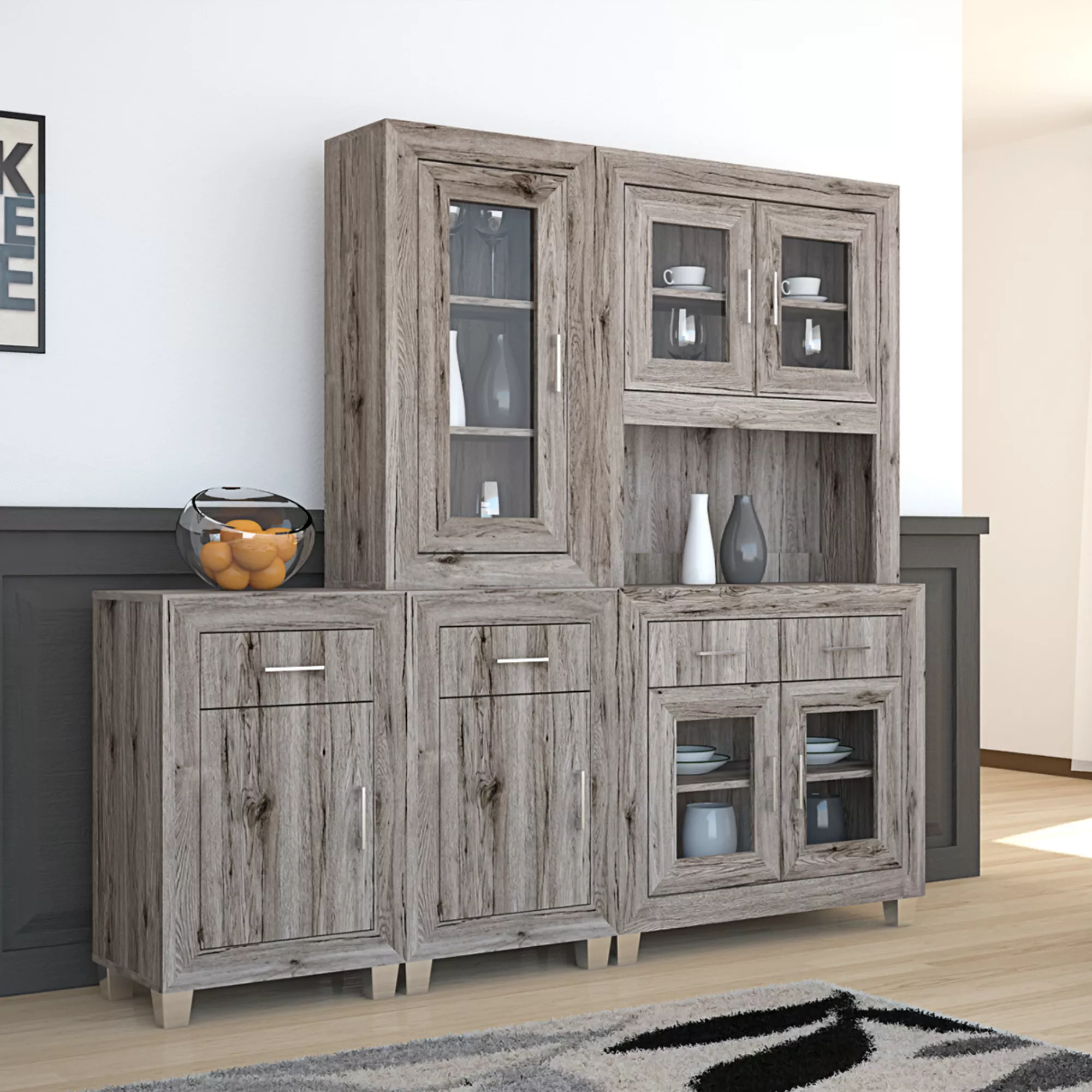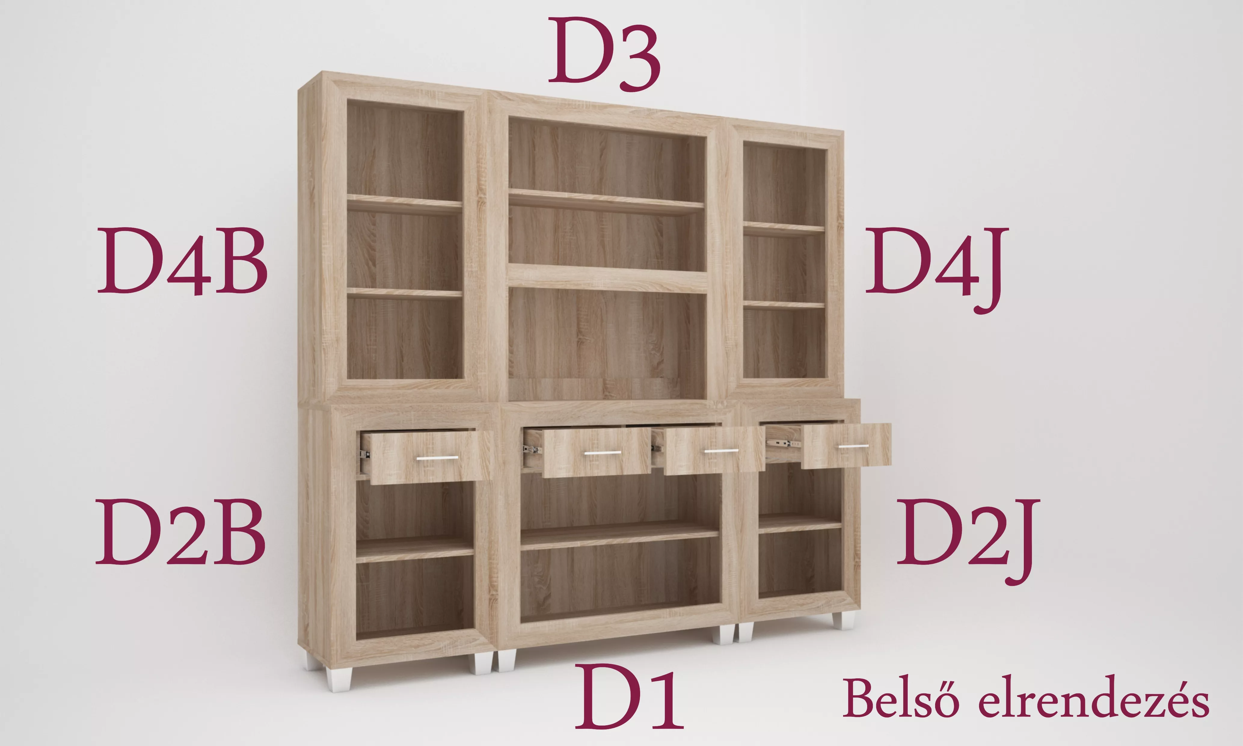 Gondold újra a tálalószekrényről alkotott eddigi elképzeléseidet. A legújabb irányzatokat követő, egyedi igények szerint variálható Dany tálalónk elemes kialakításának köszönhetően nagyon jól kombinálható bútordarab. Az 56 és 96 cm széles elemek variációja többféle megjelenést tesz lehetővé. Letisztult formavilágának köszönhetően remekül beilleszkedik egy klasszikus vagy éppen modern stílusban berendezett konyhába vagy étkezőbe. Sonoma tölgy és san remo színekben választható.