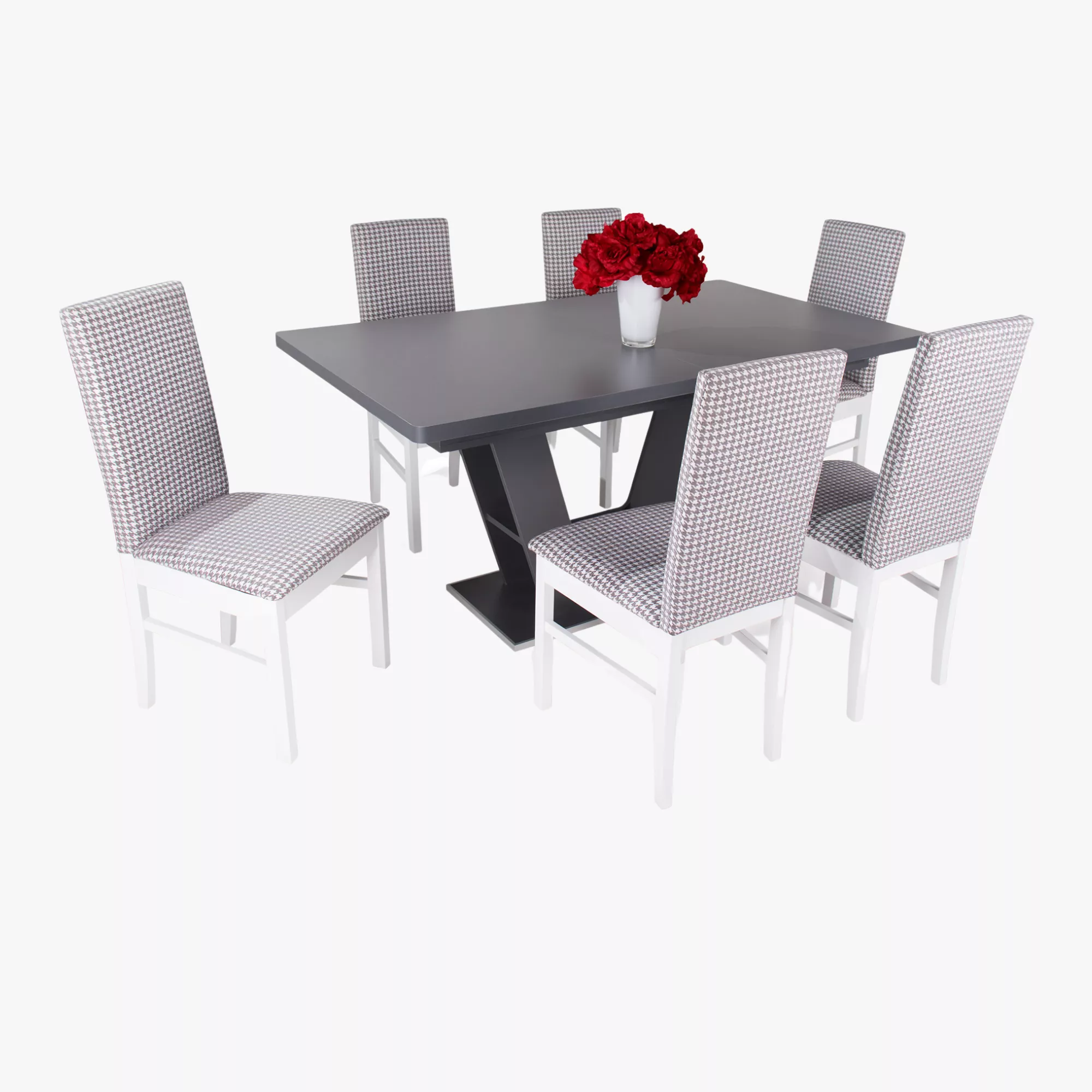 Enzo asztal - 120x80 + 40 cm - Fehér - Matt sötétszürke