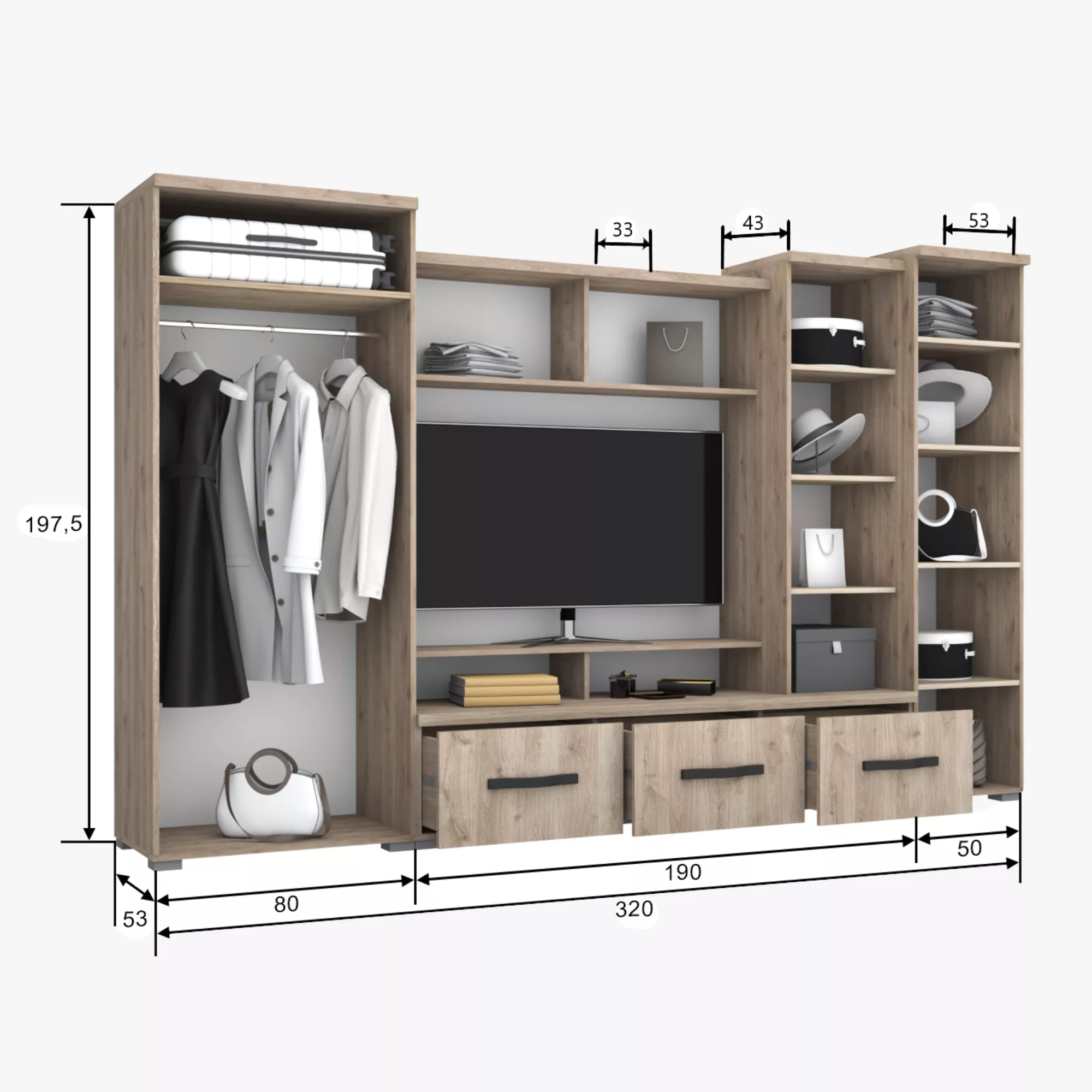 szél/mag/mély : 320 x 197,5 x 53 cm