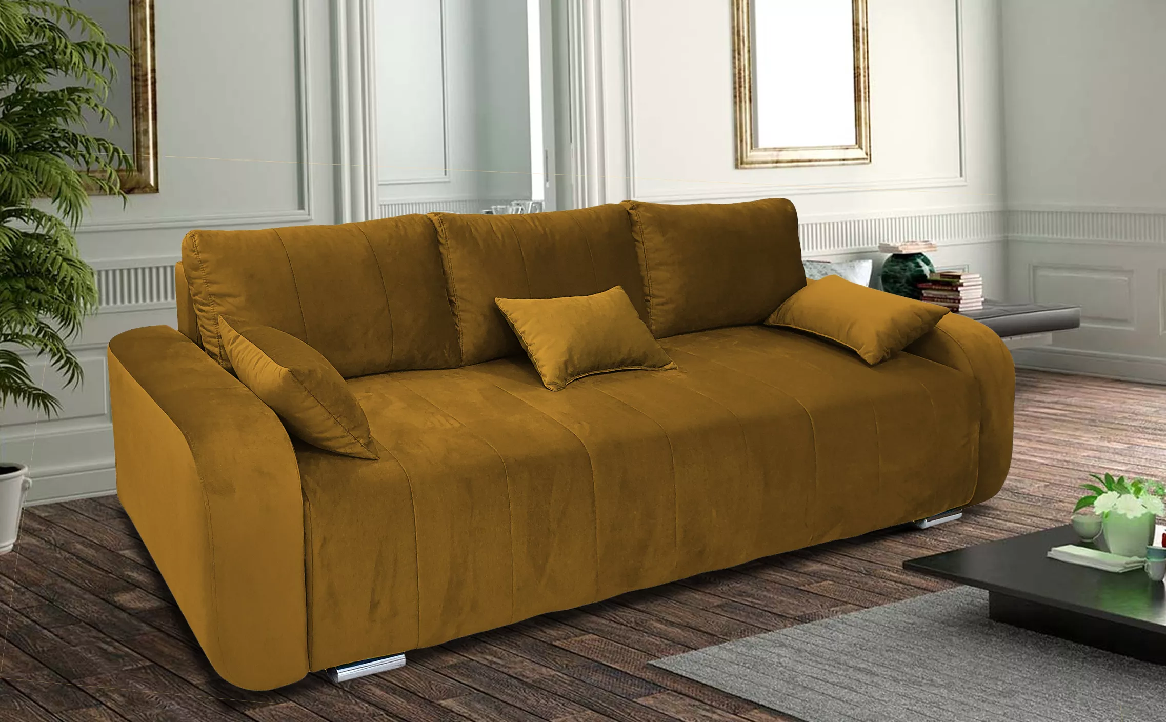 A Honey Bis kanapé modern, visszafogott eleganciájával és változatos színösszeállításával hívja fel magára a figyelmet. Bársonyos szövetborítással, hatféle színösszeállításban rendelhető. A kanapé ülőfelülete bonell-rugós kialakítású, ami a bútor tartósságáért és a kényelemért felel. A kanapé azért is nagyon praktikus, mert azontúl, hogy magas fekhelyes ülőgarnitúra, több funkcióval is rendelkezik: ágyneműtartója értékes tárolóhelyet biztosít, továbbá automata kiemelőmechanikájának köszönhetően könnyedén ággyá alakítható, ezért a vendégek elszállásolására is kiválóan alkalmas. A hátulja is szövettel van bevonva.
