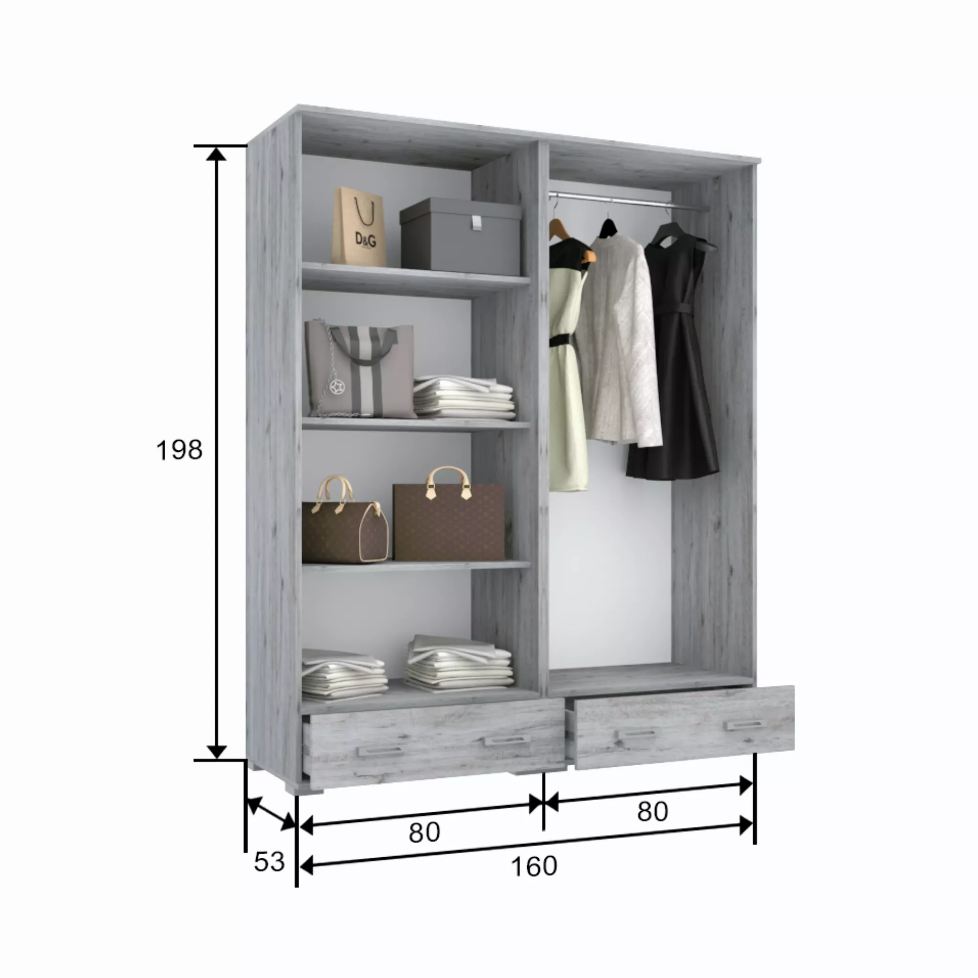 szél/mag/mély : 160 x 198 x 53 cm