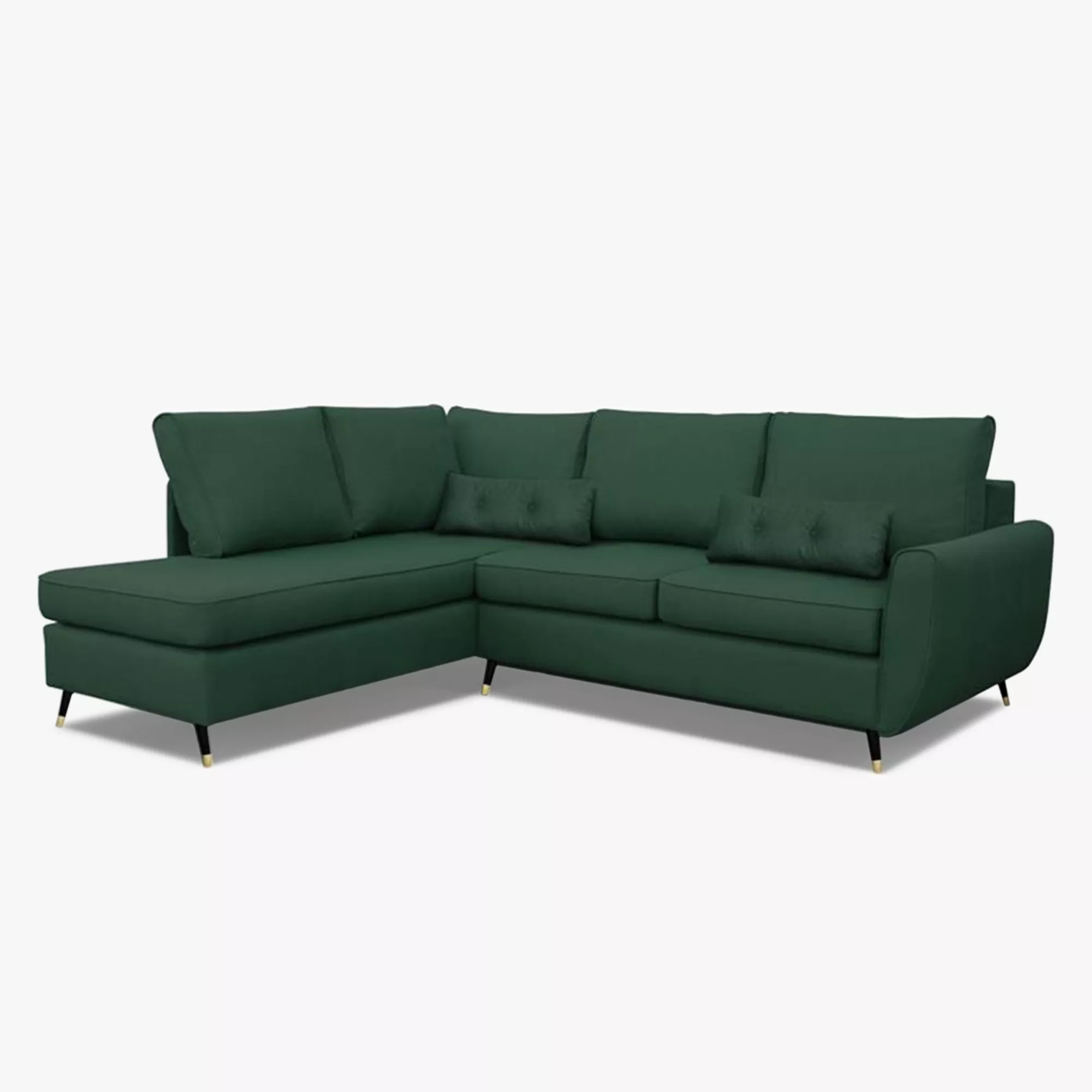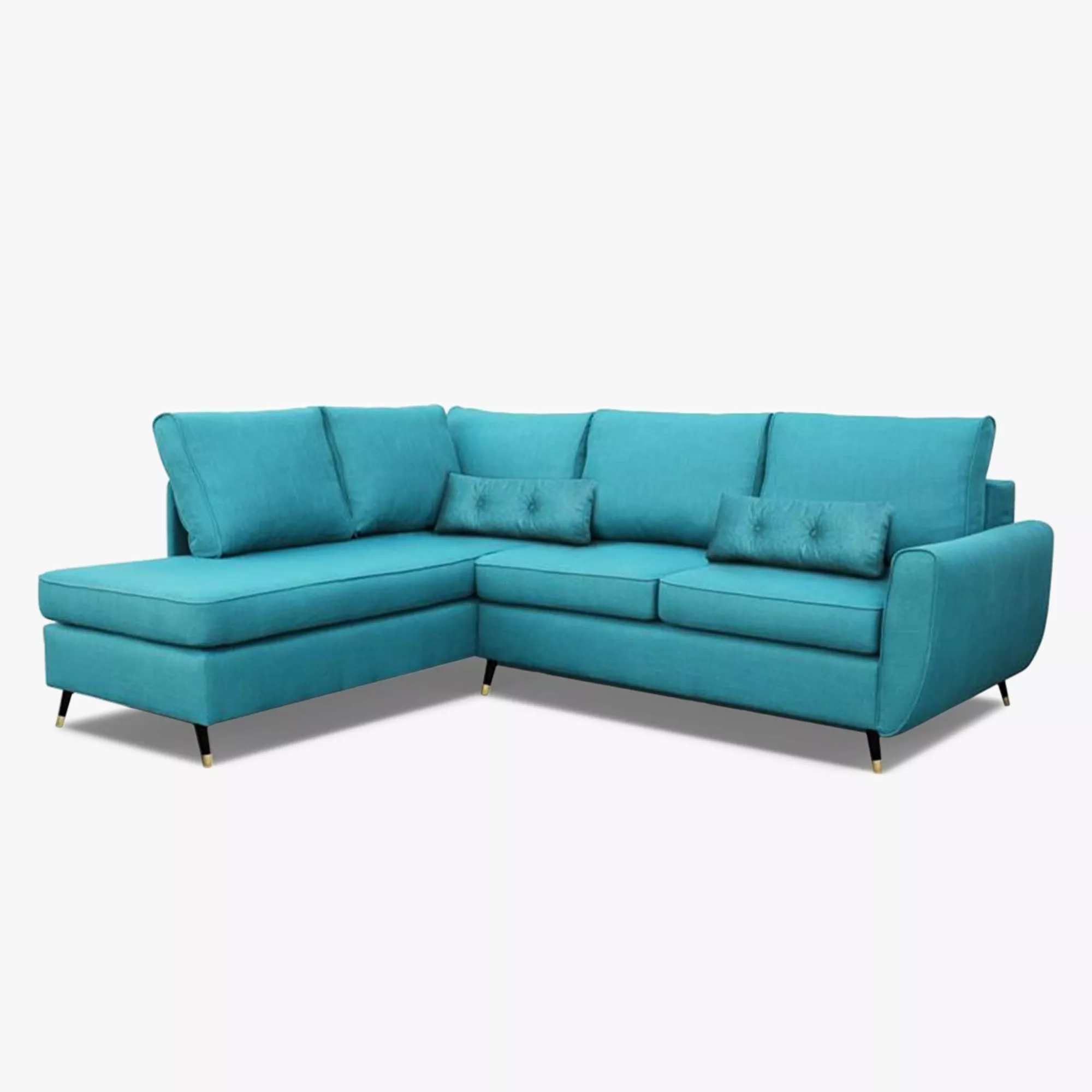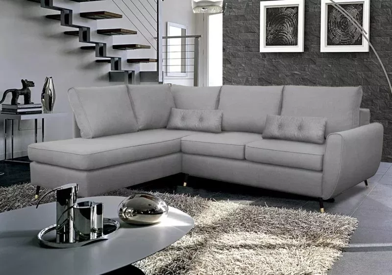 Lucyna L alakú sarokülő - Komfortos méret, masszív hullámrugós alátámasztás, párnázott háttámla. Helyezd magad kényelembe ezen a modern és elegáns sarokülőn, mely tökéletes választás otthonod számára. Gazdag színválasztékkal rendelhető, hogy harmonizáljon a belső térrel és kényelmes ülési élményt nyújtson családod és vendégeid számára. Ágyneműtartóval rendelkezik, valamint automata kiemelő mechanika segítségével ággyá alakítható. A hátulja is szövettel van bevonva. Jobbos és balos állásban rendelhető. A képen balos állásban látható.