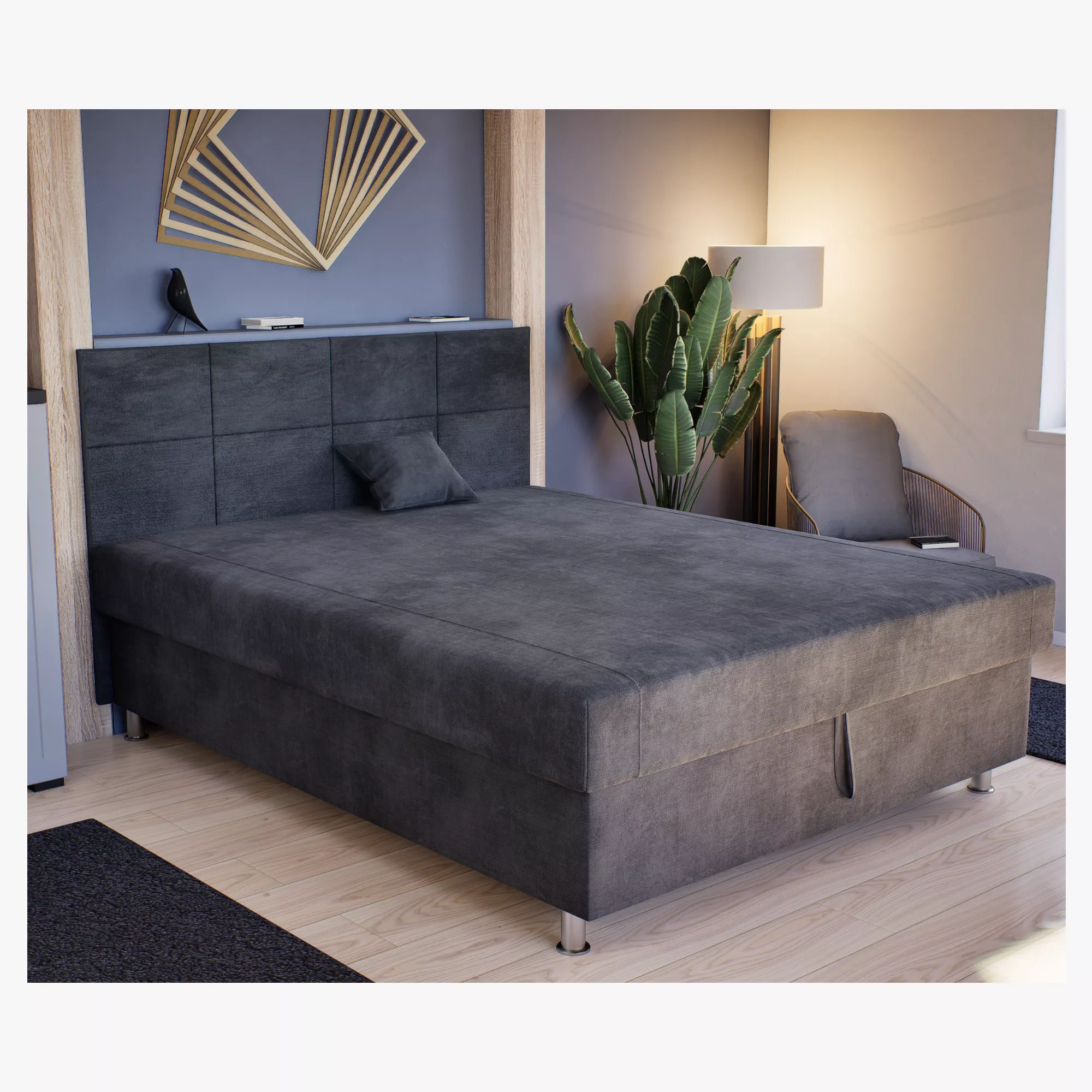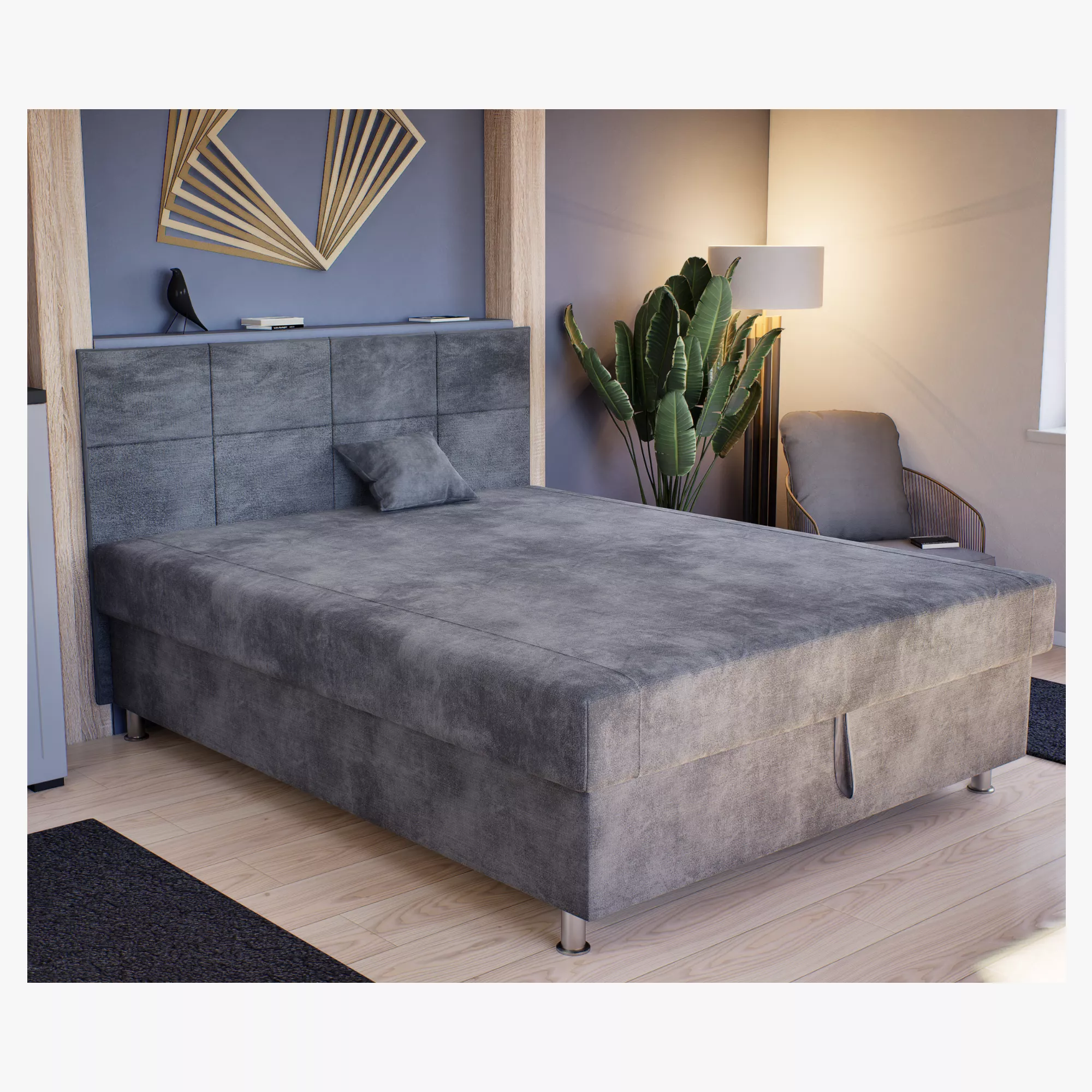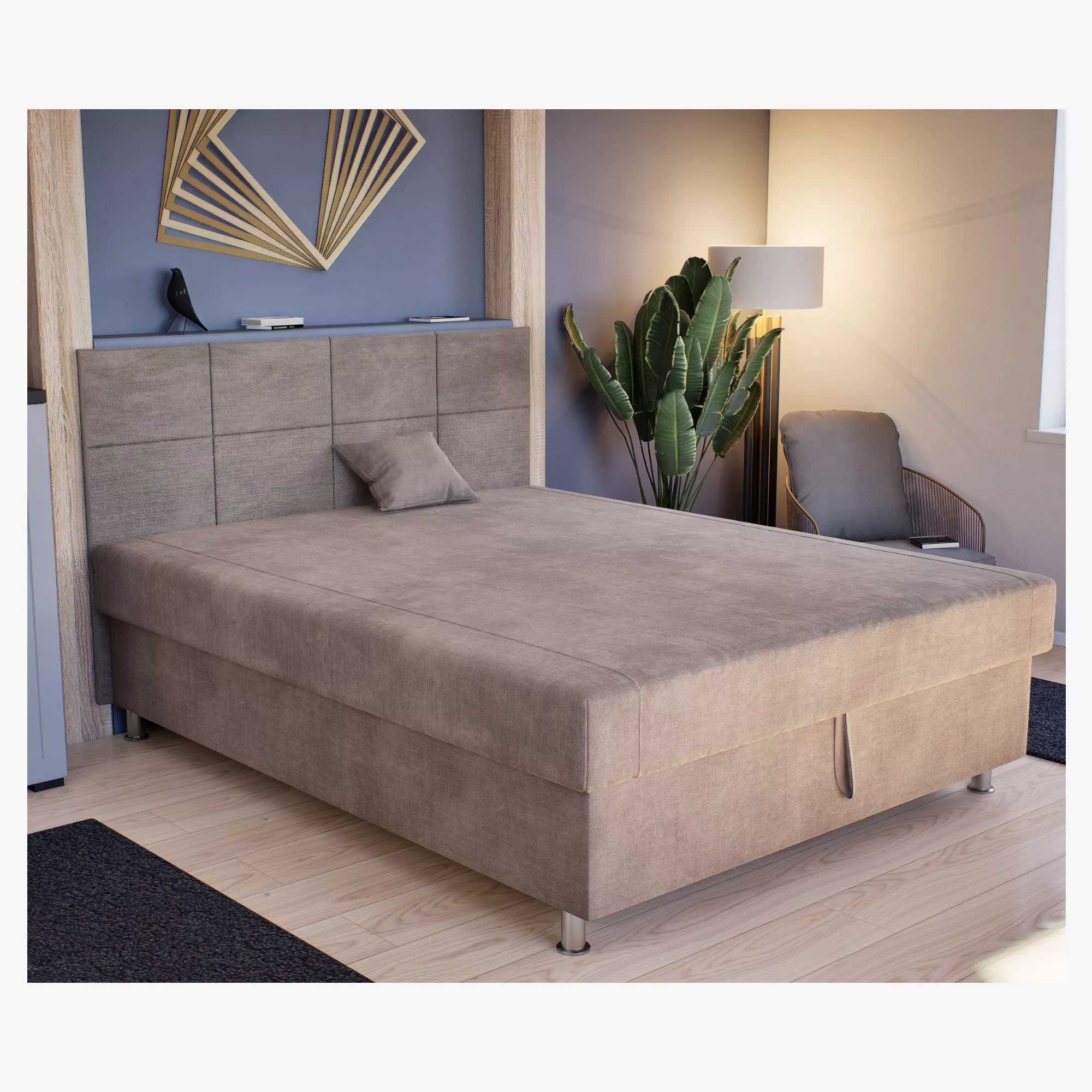 Hihetetlenül elegáns Maya franciaágyunk hatalmas laminált ágyneműtartóval, extra rugós fekvőfelületével lenyűgöző darabja lehet hálószobádnak. 10 cm-es fém lábai ideális magasságba emelik a fekvőfelületet, megkönnyítve ezzel az ágyról való leszállást.