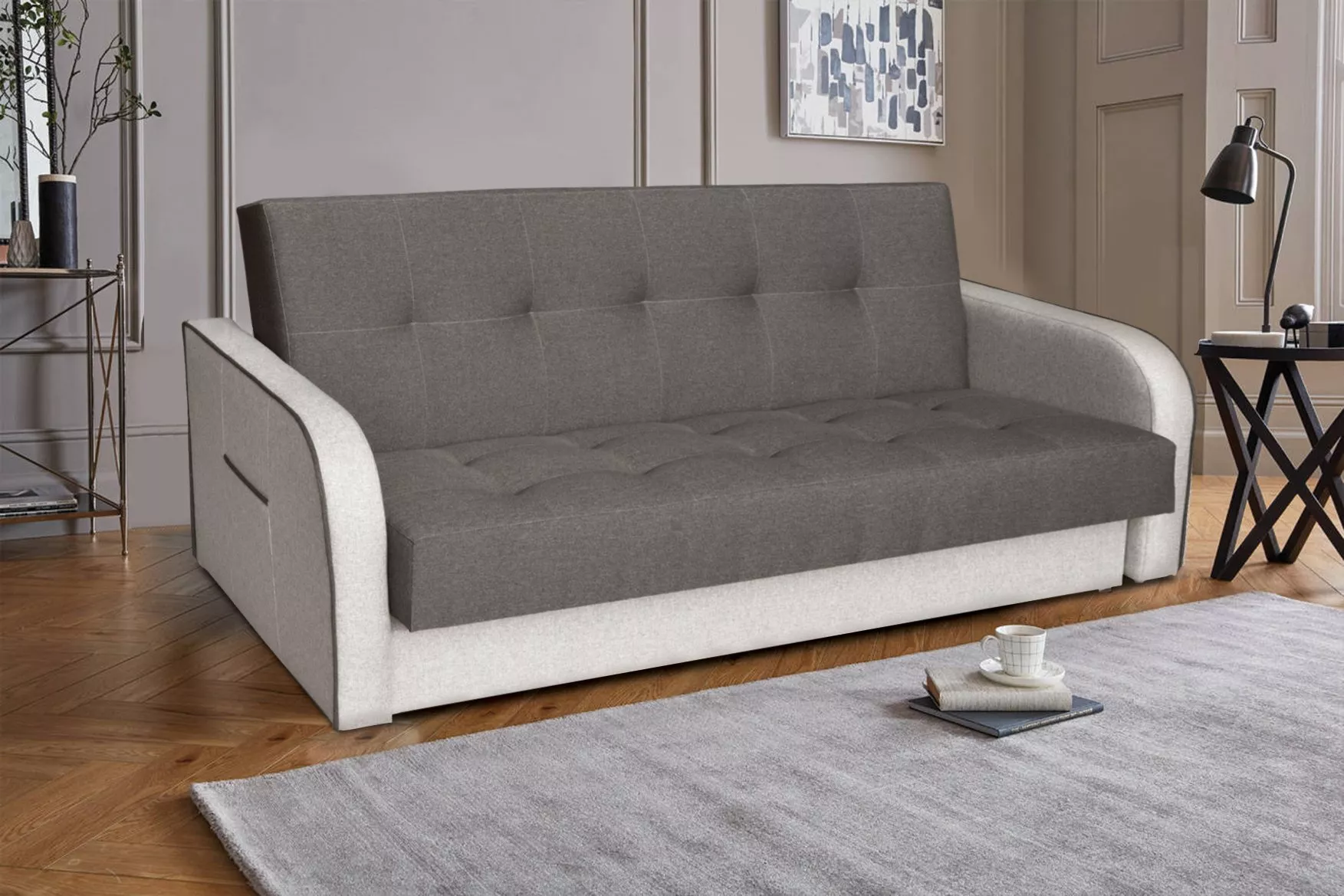 Bátran kijelenthetjük, hogy egyik legkomfortosabb bútordarabunk a hosszú baráti beszélgetésekhez, valamint az esti filmezésekhez a Milano Bis kanapé. Visszafogott színei, legömbölyített irattartós karfája, behúzott ülőfelülete és háttámlája maximális kényelmet és elegáns stílust tükröz. Szövet kárpitozása többféle színkombinációban rendelhető. Ülőfelülete Bonell-rugós kialakítású, mindamellett a kattanós vasalatnak köszönhetően könnyedén ággyá alakítható. Ülőfelülete alatt ágyneműtartó került kialakításra.