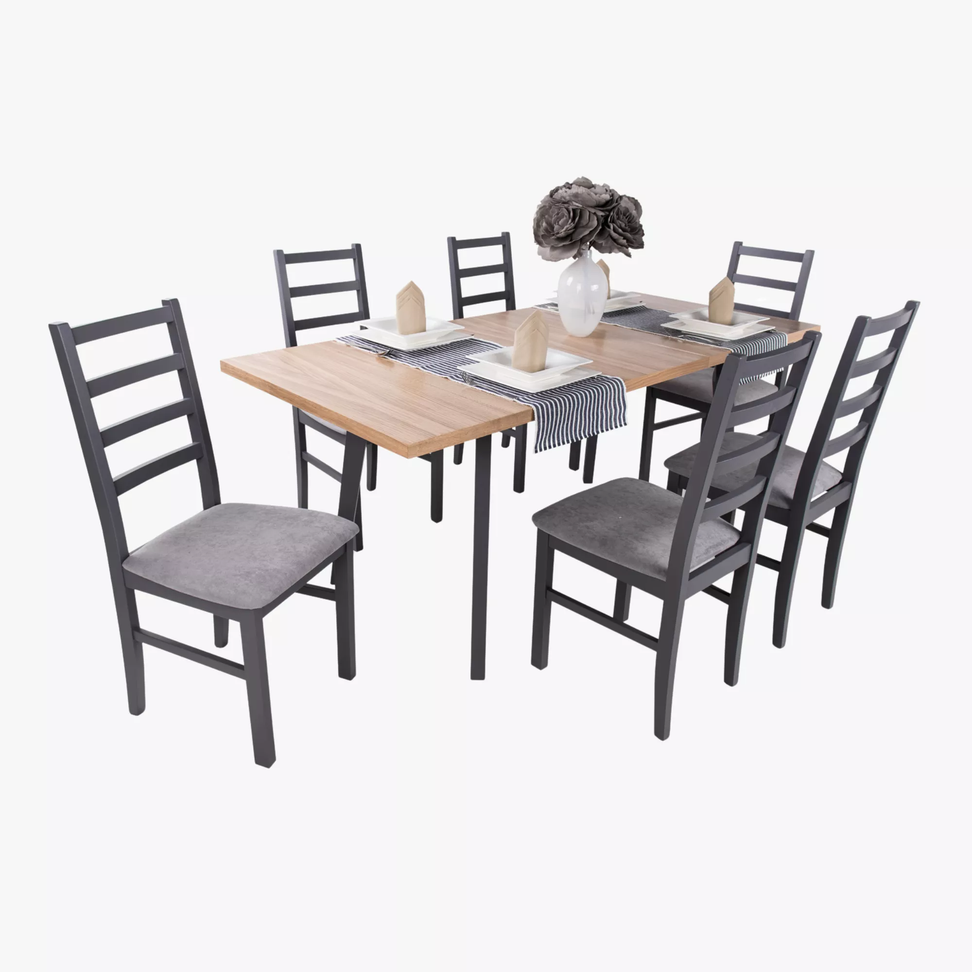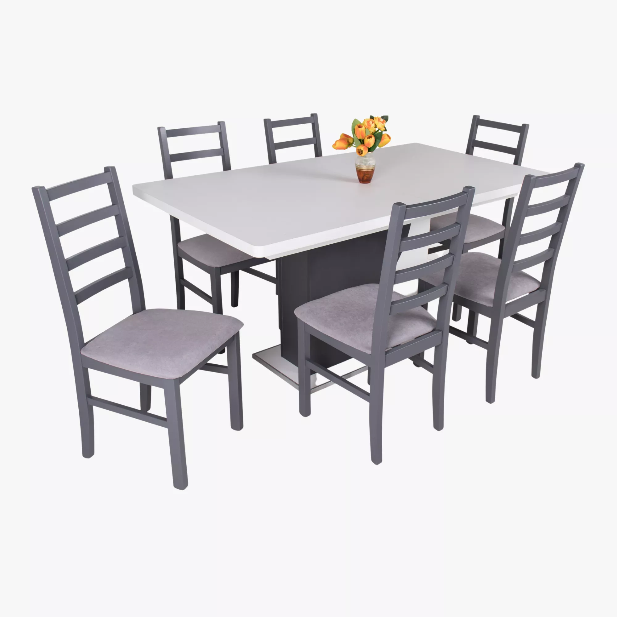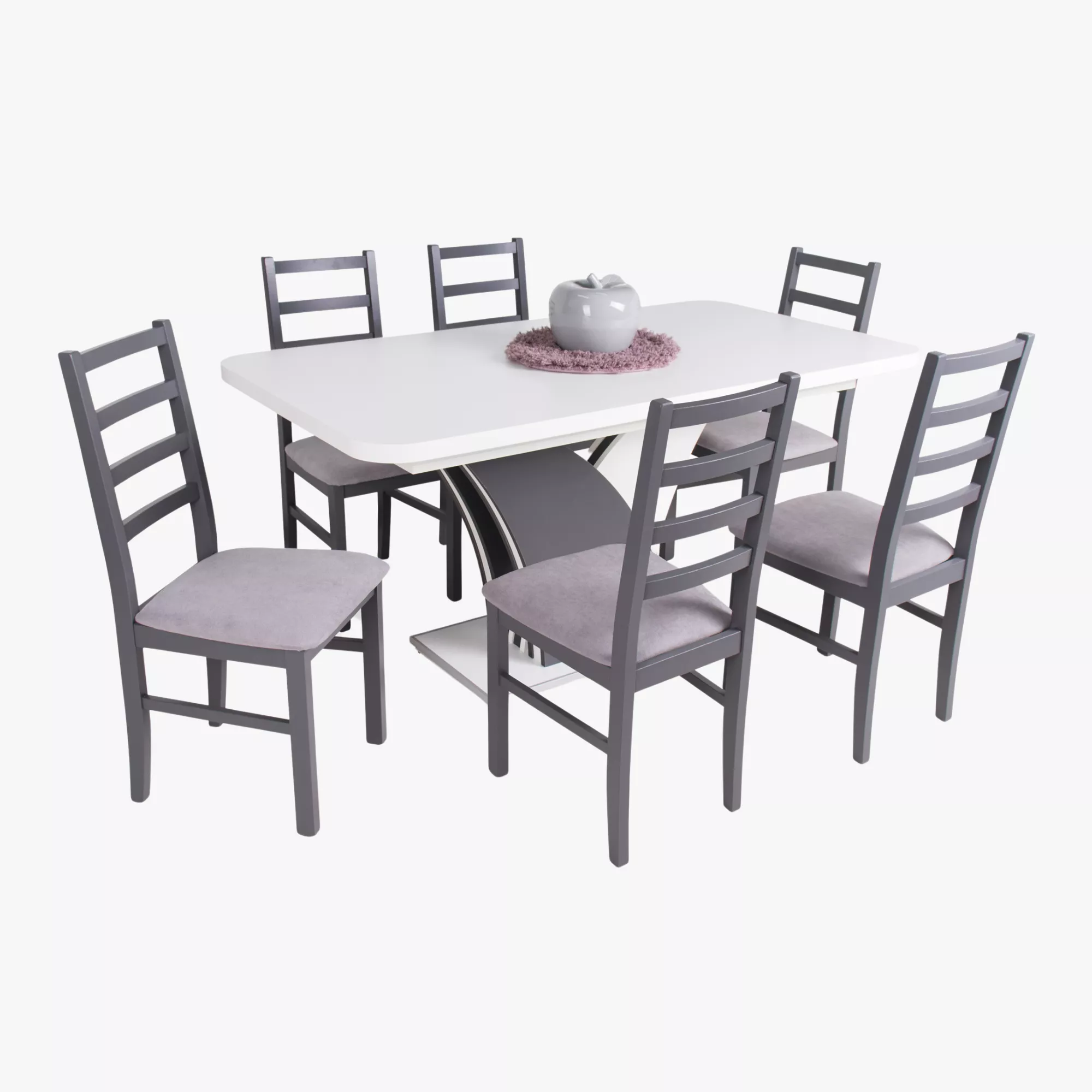 Enzo asztal - 120x80 + 40 cm - Fehér - Matt sötétszürke