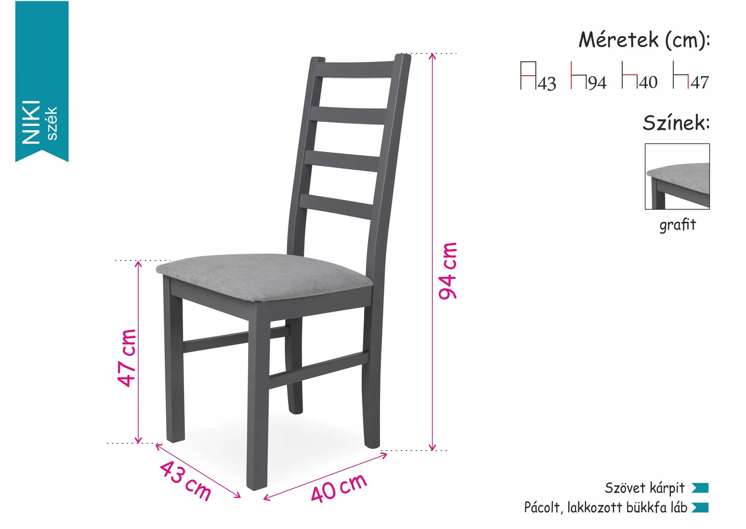 ülőlap magasság: 47 cm