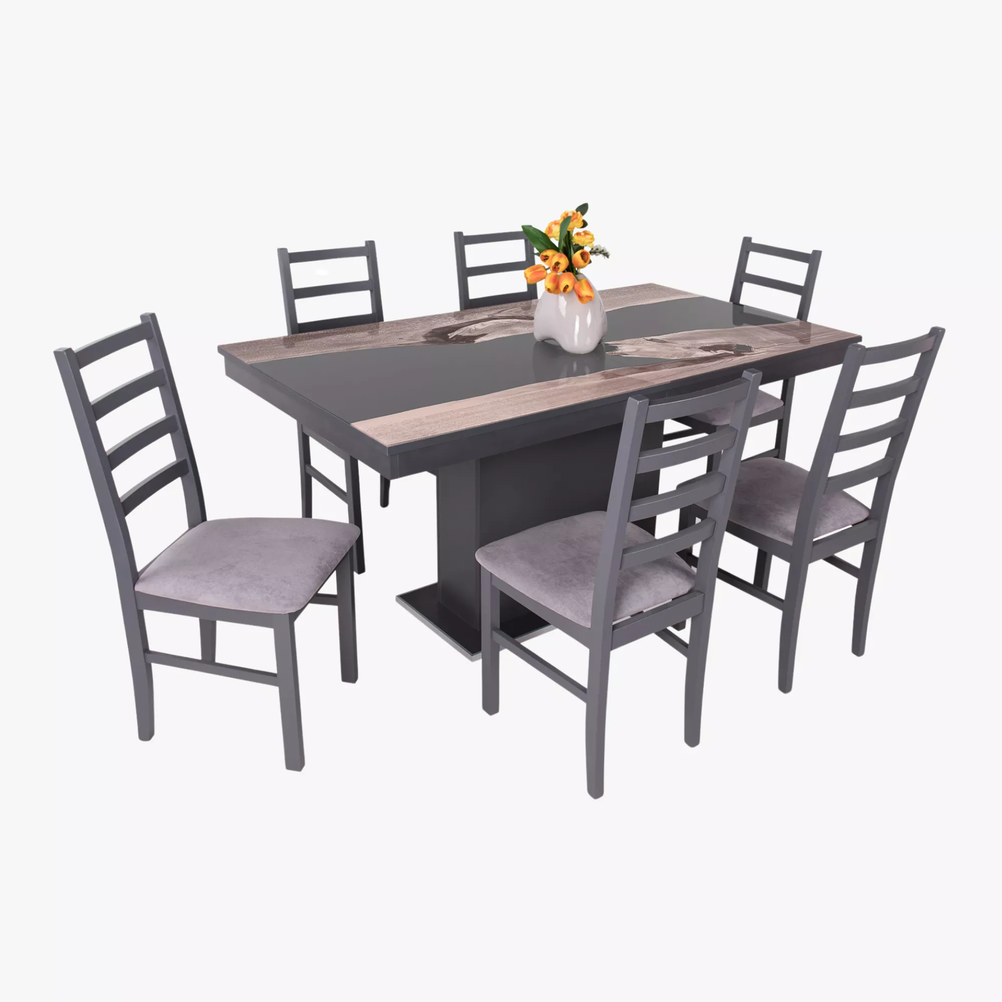 Magasfényű Flóra Plusz asztal - Iszap tölgy - Fehér Epoxy - Flóra plusz | Magasfényű cappuccino | Bővíthető