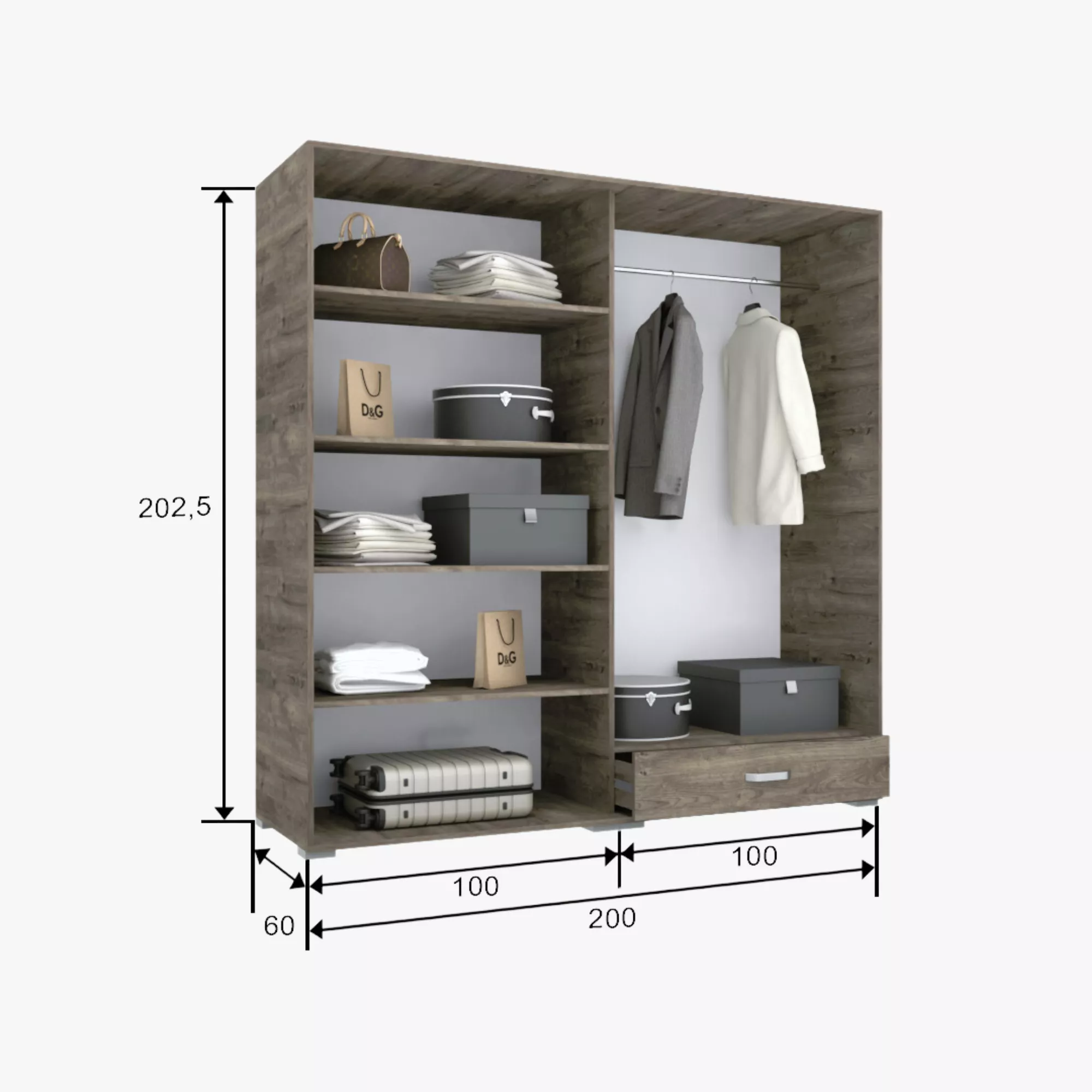 | Vállfatartó rúd és polcok | Minimálisan állítható polcok |