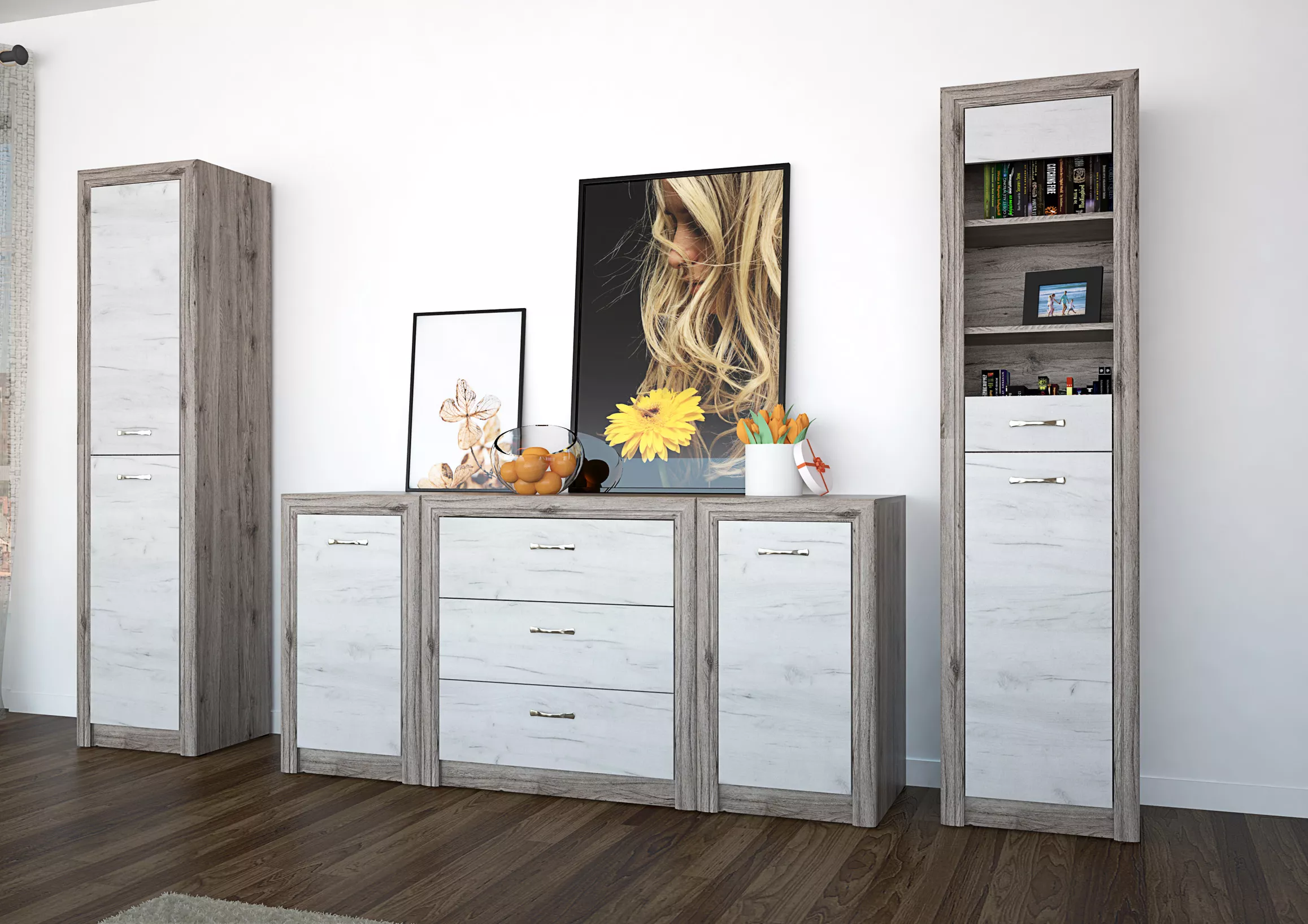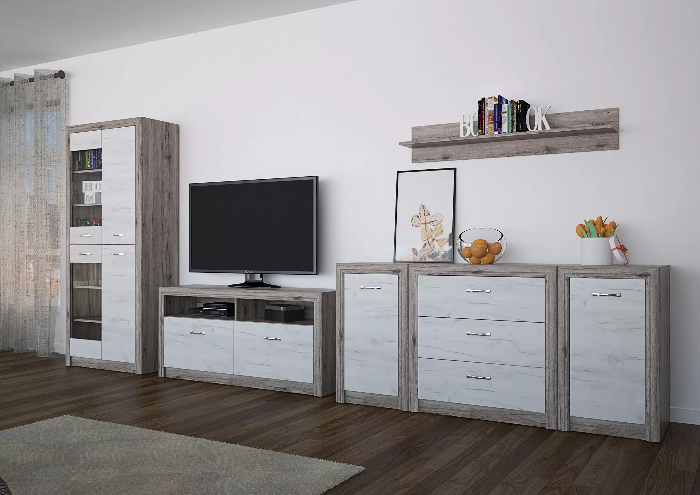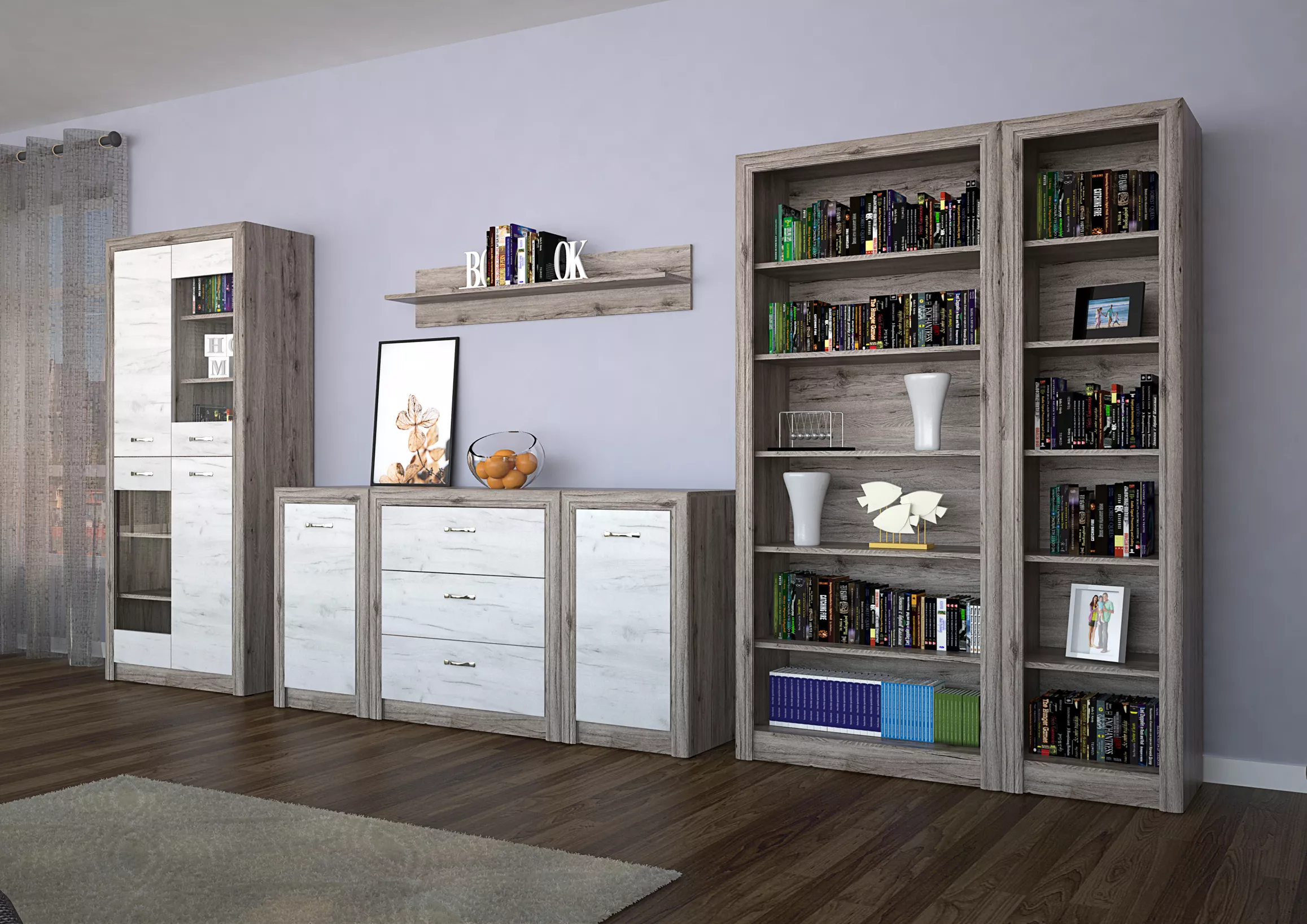 Rió eloszoba - Elemes bútor - Gotland tölgy - Szürke tölgy