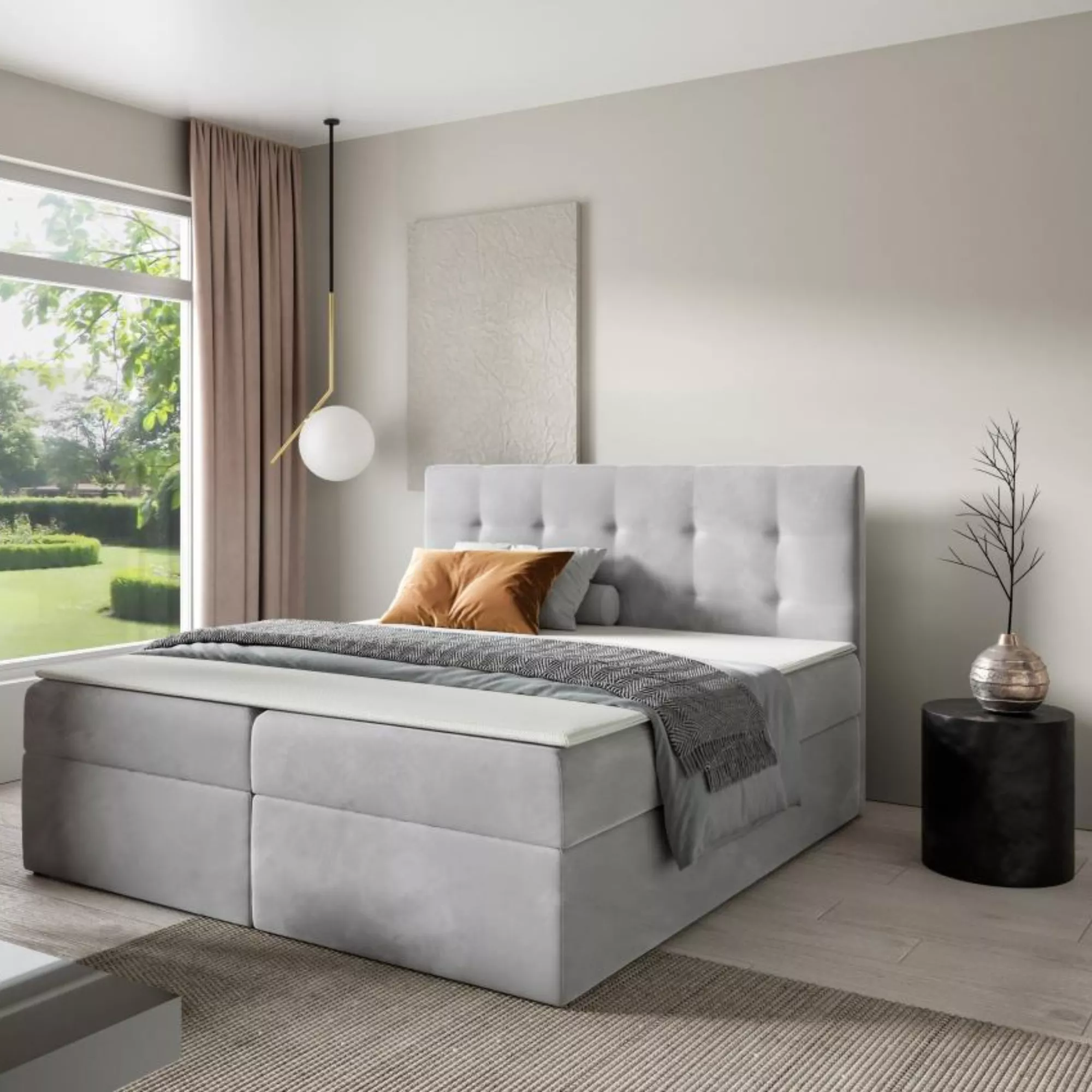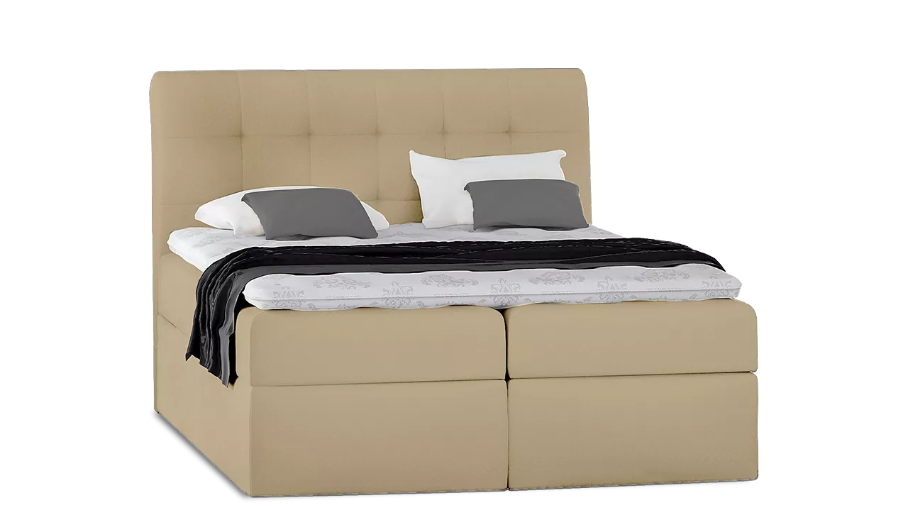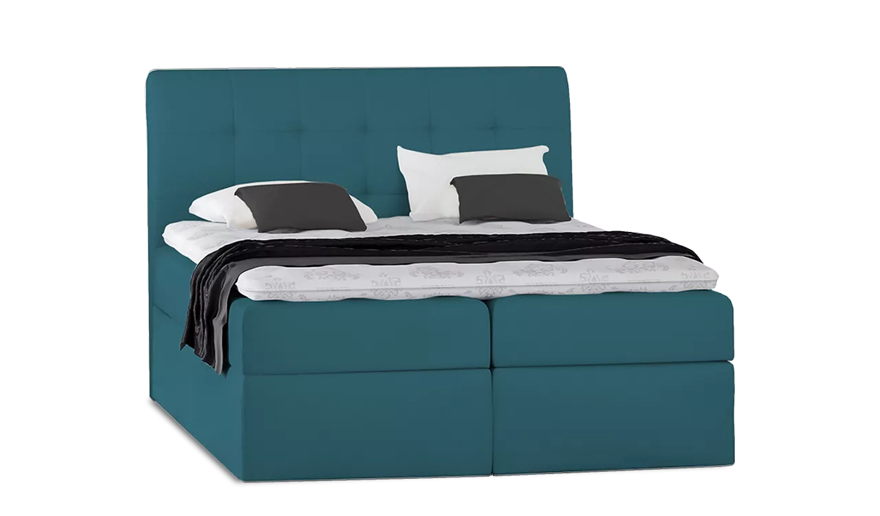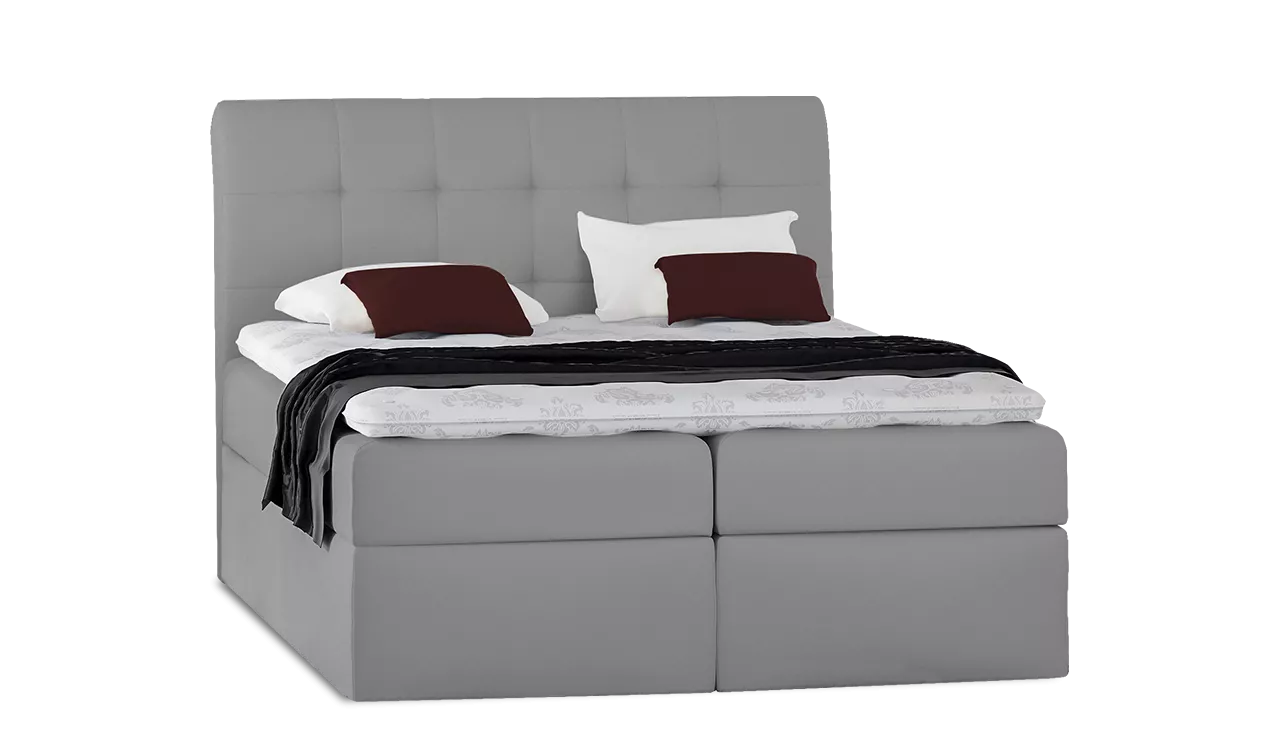 Typ50 modern kivitelű boxspring franciaágy erősített rugós fekvőfelülettel, oldalról nyitható, ágyneműtartós. A fekvőfelülethez fedőmatrac is tartozik. A franciaágy fekvőfelületére vékony fekvőbetét, más néven “topper” kerül. A fedőmatrac nem csak kényelmi rétegként szolgál, hanem ezzel a fekvőfelületet-szövetet is jobban kíméli. A franciaágy elemekre szerelten kerül kiszállításra. Az ár a fejtámlát, a bonell rugós matracot és a fedőmatracot tartalmazza!