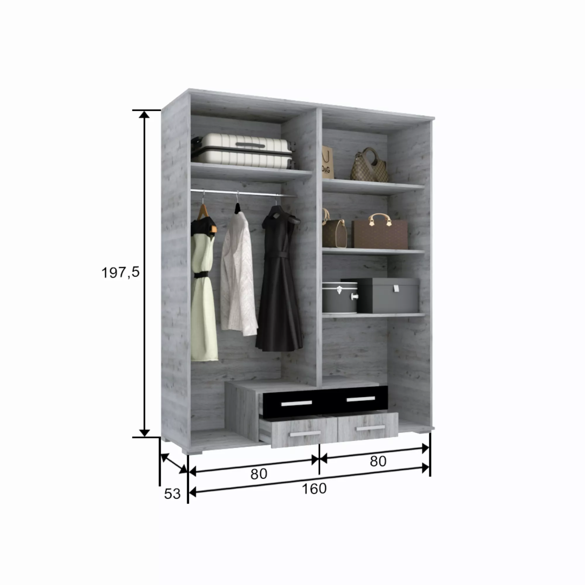 Méretek (160 cm): szél/mag/mély: 160 x 197,5 x 53 cm
